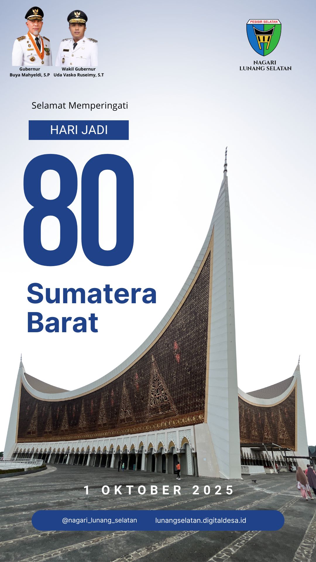 1 Oktober 1945 - 1 Oktober 2025. Selamat Hari Jadi ke-80 Provinsi Sumatera Barat!