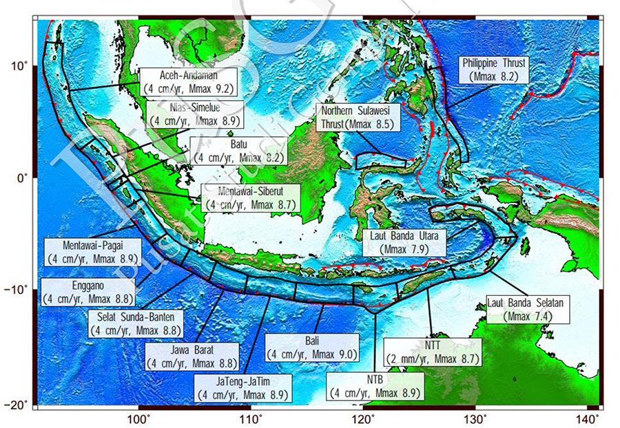 (8,9); Enggano (8,4); Selat Sunda (8,7); hingga Megathrust Papua (8,7).